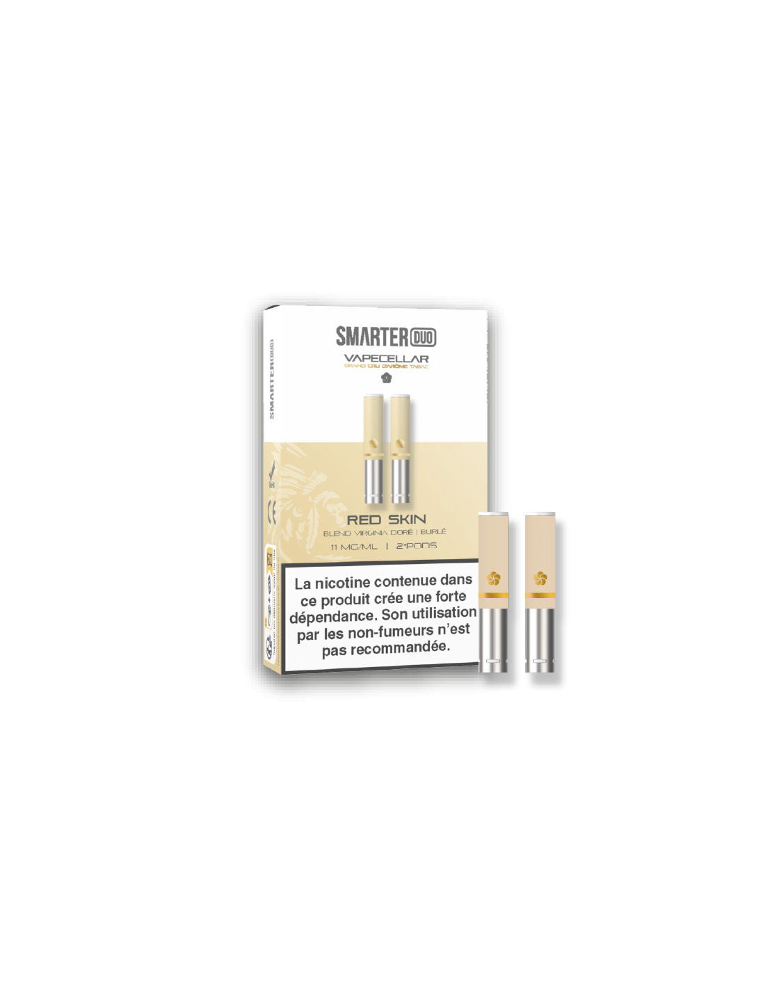 ×2 Pods pour Smarter Duo, chaque pod contenant 1,2 ml de e-liquide Red Skin. Vissez simplement votre pod dans votre e-cig Smarter Duo, et vapotez.